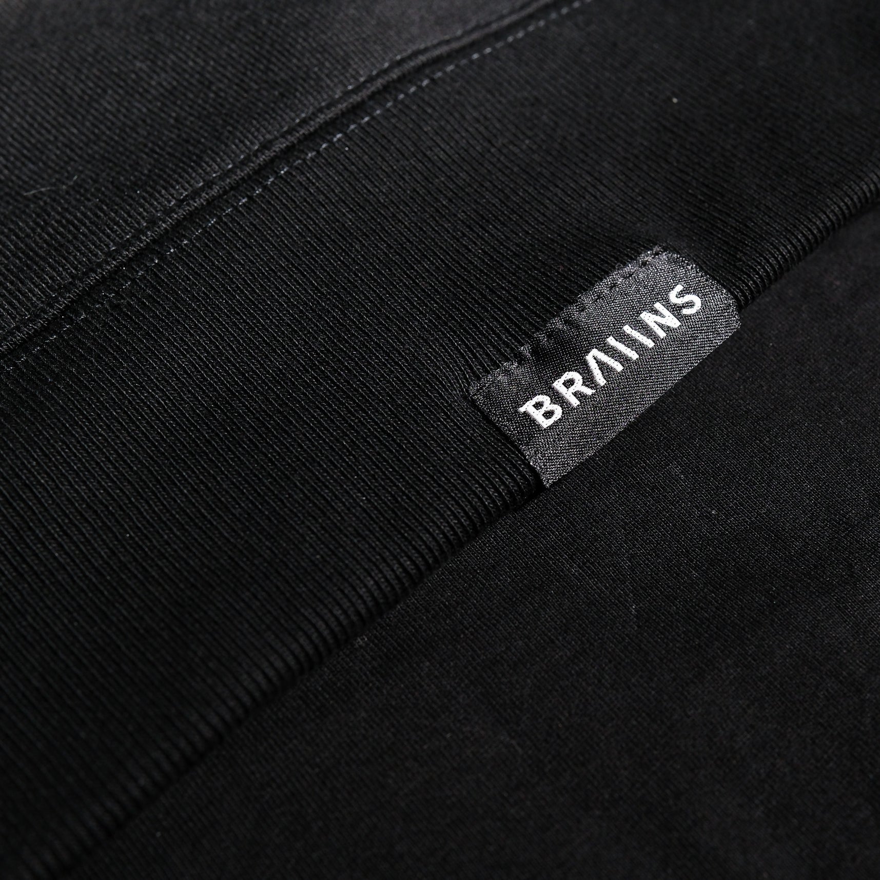 The embroidered crewneck sweatshirt has been crafted from heavy, organic brushed cotton (400g/m²) and certified by Global Organic Textile Standard. The subtle grey embroidery of the Braiins logo on the chest adds a refined touch while its raglan sleeves and classic V-notch at the collar enhance both fit and flexibility. Ribbed side panels ensure comfort and durability, while the ‘Braiins’ textile tag at the bottom hem adds a finishing detail.